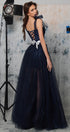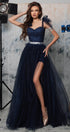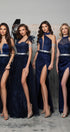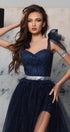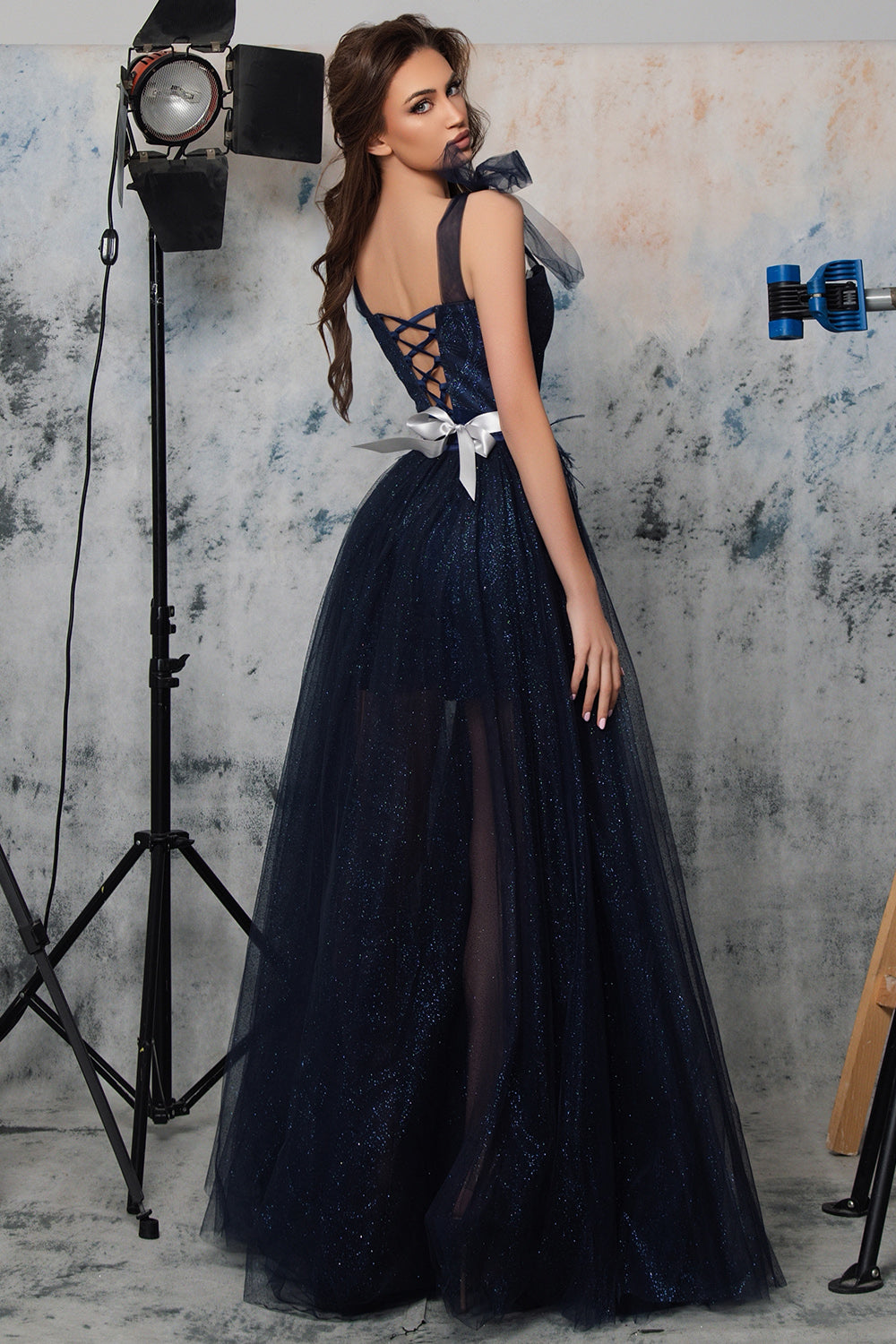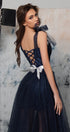 MAXI CROP TOP AND PANTS AND CLOAK SET KALINDA GLITTER LACE GLITTER TULLE DARK BLUE