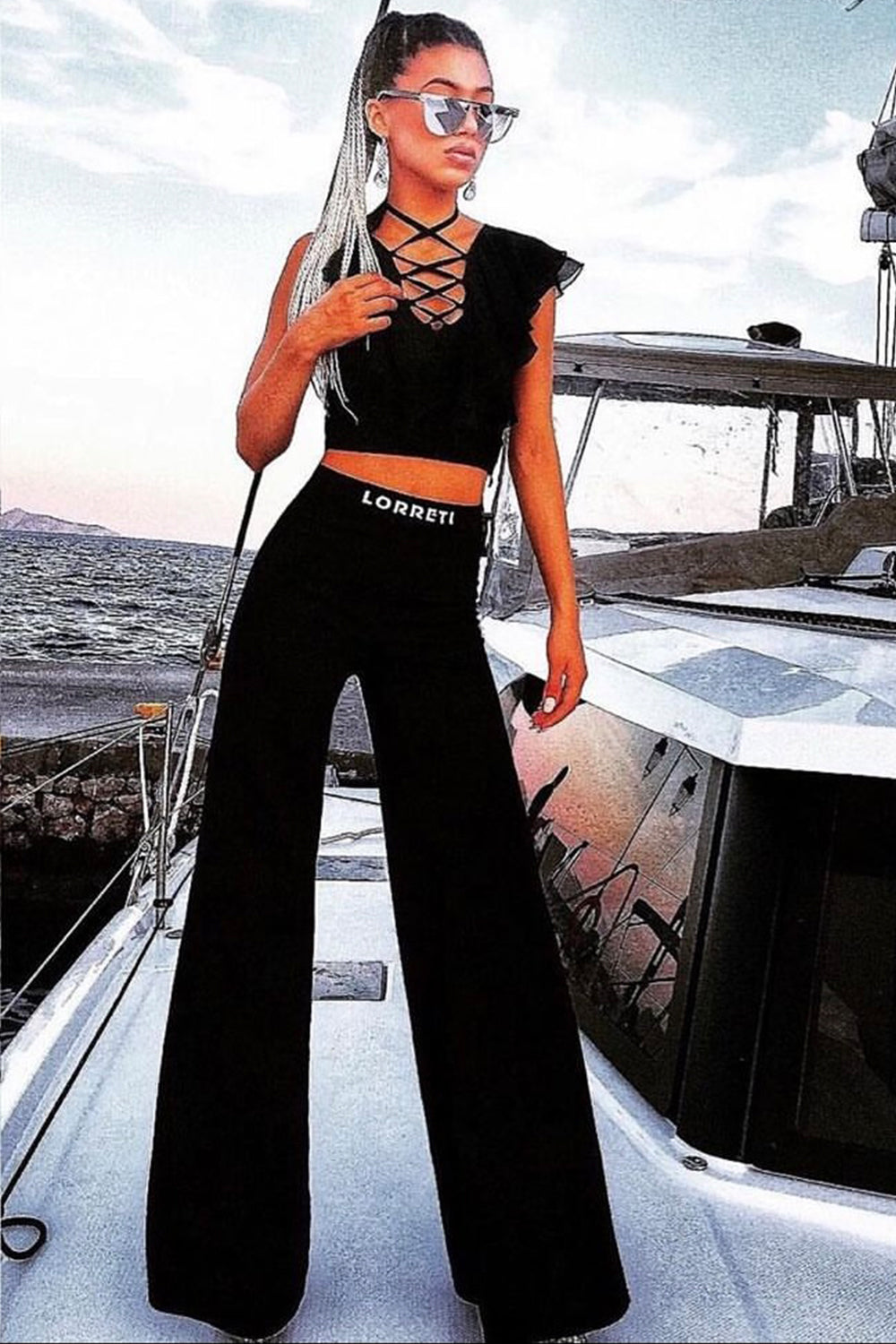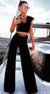 MAXI CROP TOP AND PANTS SET 2 PARTS BI-STRETCH FABRIC BLACK