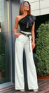 MAXI CROP TOP AND PANTS SET 2 PARTS TRICOT BLACK AND WHITE