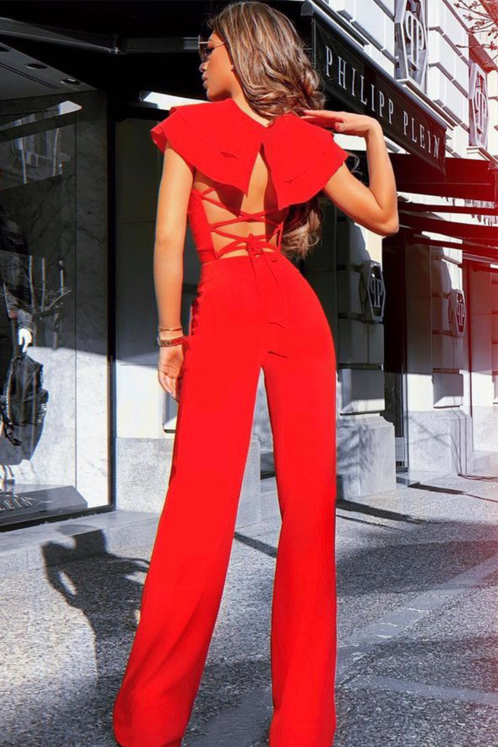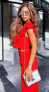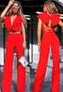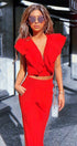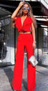 MAXI CROP TOP AND PANTS SET 2 PARTS TRICOT RED