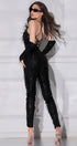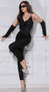 MAXI CROP TOP AND PANTS SET DANIELA SEQUIN FEATHERS BLACK