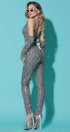 MAXI CROP TOP AND PANTS SET DANIELA SEQUIN FEATHERS DARK GREY