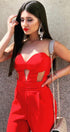 MAXI CROP TOP AND PANTS SET TRICOT RED