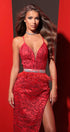 MAXI SKIRT AND CROP TOP SET KALI GLITTER LACE RED