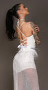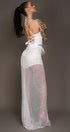 MAXI SKIRT AND CROP TOP SET LOLA SEQUIN WHITE