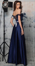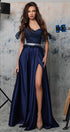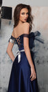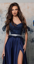 MAXI SKIRT AND CROP TOP SET MELINA GLITTER LACE SATIN DARK BLUE
