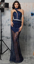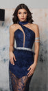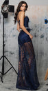 MAXI SKIRT AND CROP TOP SET NAVY GLITTER LACE DARK BLUE