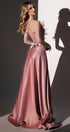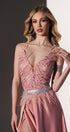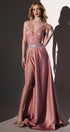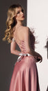 MAXI SKIRT AND CROP TOP SET SOPHY GLITTER LACE FEATHERS SATIN POWDER PINK
