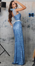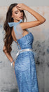 MAXI SKIRT AND CROP TOP SET STARLING GLITTER LACE LIGHT BLUE