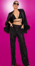 MAXI TOP WITH PANTS AND BLAZER SET 4 PART SHELBY SEQUIN FEATHERS BLACK