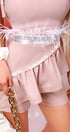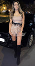 MINI CROP TOP AND PANTS SET 2 PARTS RAINBOW BI-STRETCH FABRIC BEIGE / NUDE