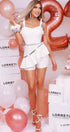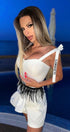 MINI CROP TOP AND PANTS SET 2 PARTS RAINBOW BI-STRETCH FABRIC WHITE