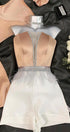 MINI CROP TOP AND PANTS SET 2 PARTS TRICOT SATIN ROSE GOLD AND WHITE
