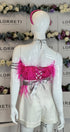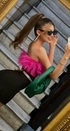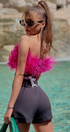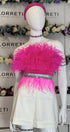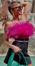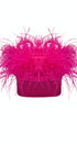 MINI CROP TOP FEATHERS SATIN HOT PINK