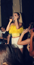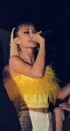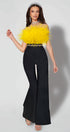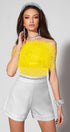 MINI CROP TOP FEATHERS SATIN YELLOW