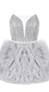 MINI SKIRT AND CROP TOP SET AMORE SEQUIN TULLE SILVER