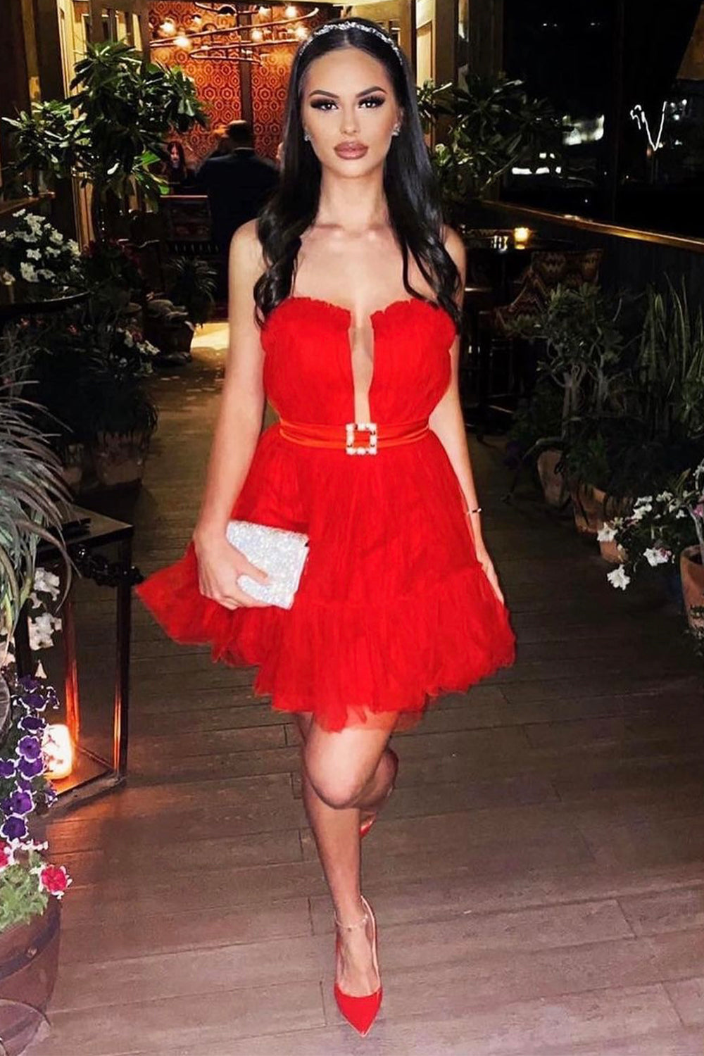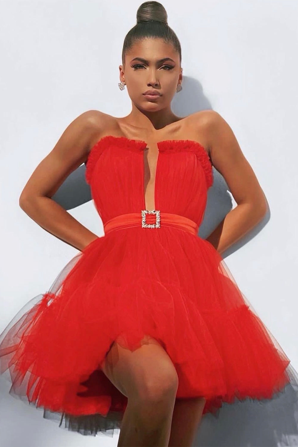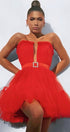 MINI SKIRT AND CROP TOP SET ANNALISE TULLE RED