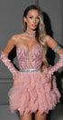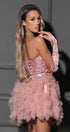 MINI SKIRT AND CROP TOP SET BRENDA GLITTER LACE TULLE POWDER PINK