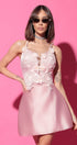 MINI SKIRT AND CROP TOP SET MAGGIE LACE SATIN POWDER PINK