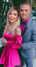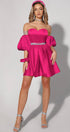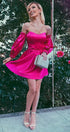 MINI SKIRT AND CROP TOP SET MARYLIN SATIN HOT PINK