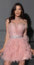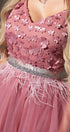 BELT MARABU FEATHERS RHINESTONE POWDER PINK