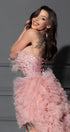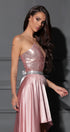 Please do not put the dress in a washing machine with a spin cycle or in a dryer, and avoid treating it roughly to preserve its luxurious silhouette and quality.