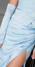 Please do not put the dress in a washing machine with a spin cycle or in a dryer, and avoid treating it roughly to preserve its luxurious silhouette and quality.