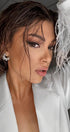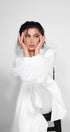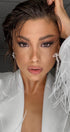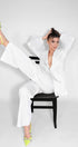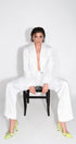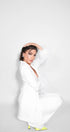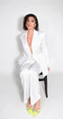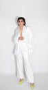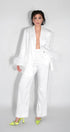 MAXI BLAZER AND PANTS SET GRETA 3 PARTS SATIN FEATHERS WHITE