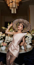 MAXI CROP TOP AND PANTS AND HAT SET CANNES SATIN ROSE GOLD