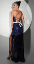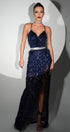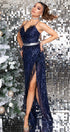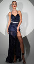 MAXI SKIRT AND CROP TOP SET ALAIA SEQUIN DARK BLUE
