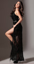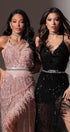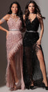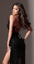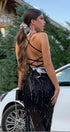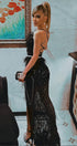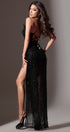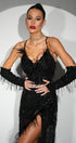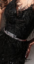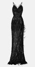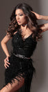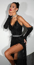 MAXI SKIRT AND CROP TOP SET ALAIA SEQUIN FEATHERS BLACK
