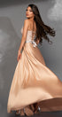 MAXI SKIRT AND CROP TOP SET CONSTANCE GLITTER LACE SATIN WHITE AND NUDE