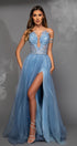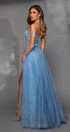 MAXI SKIRT AND CROP TOP SET EMILIANA SEQUIN GLITTER TULLE LIGHT BLUE