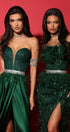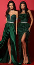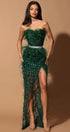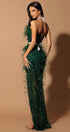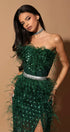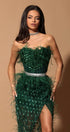 MAXI SKIRT AND CROP TOP SET FEATHER PRINCESS GLITTER LACE FEATHERS DARK GREEN