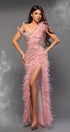 MAXI SKIRT AND CROP TOP SET ICELYNN SEQUIN FEATHERS POWDER PINK