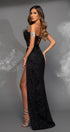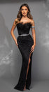 MAXI SKIRT AND CROP TOP SET IVORY GLITTER LACE FEATHERS BLACK