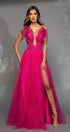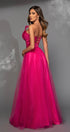 MAXI SKIRT AND CROP TOP SET MARIYA GLITTER LACE GLITTER TULLE HOT PINK