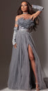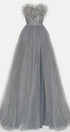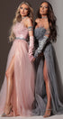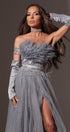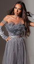 MAXI SKIRT AND CROP TOP SET PENELOPE FEATHERS GLITTER TULLE DARK GREY