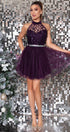 MINI DRESS NOVA LACE TULLE DARK PURPLE