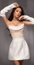 MINI SKIRT AND CROP TOP SET DORY SATIN GLITTER LACE WHITE AND NUDE