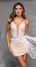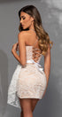 MINI SKIRT AND CROP TOP SET MAYA GLITTER LACE RHINESTONE WHITE AND NUDE