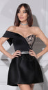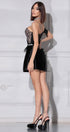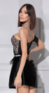 MINI SKIRT AND CROP TOP SET MILEY GLITTER LACE SATIN BLACK AND NUDE