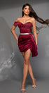 MINI SKIRT AND CROP TOP SET PROMISE GLITTER LACE SATIN BURGUNDY