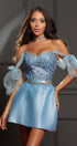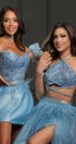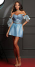 MINI SKIRT AND CROP TOP SET RENATA GLITTER LACE SATIN LIGHT BLUE