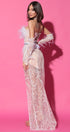 Please do not put the dress in a washing machine with a spin cycle or in a dryer, and avoid treating it roughly to preserve its luxurious silhouette and quality.