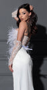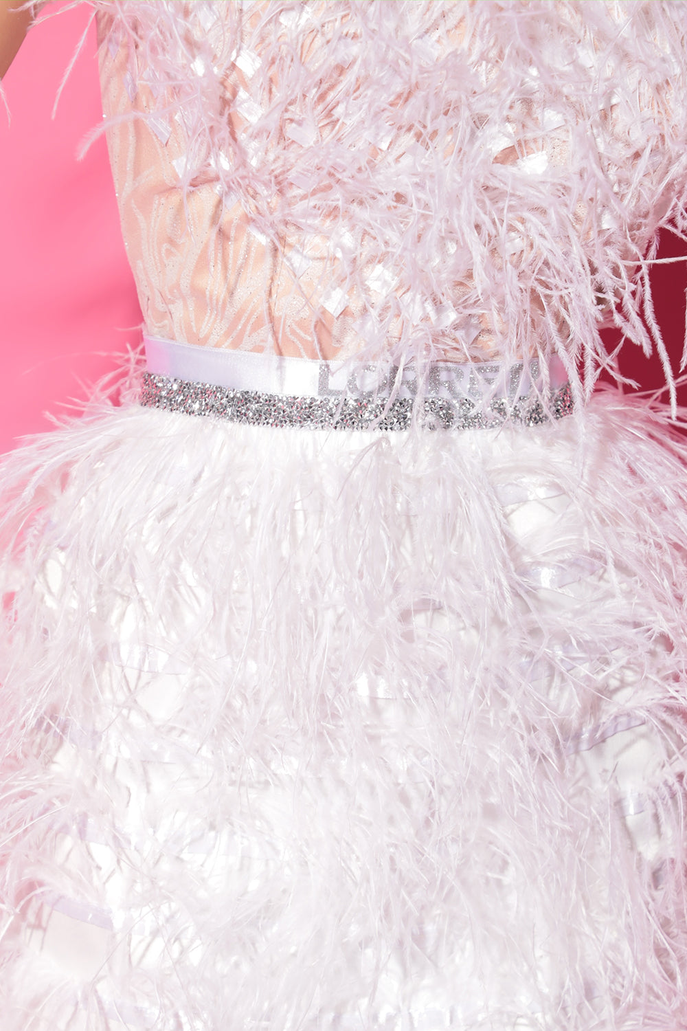 BELT MARABU 1A FEATHERS RHINESTONE WHITE