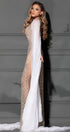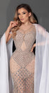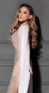MAXI DRESS ARABIAN NIGHT CHIFFON RHINESTONE SATIN CHAMPAGNE AND WHITE