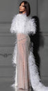 MAXI DRESS FALLEN ANGEL RHINESTONE FEATHERS CHAMPAGNE AND WHITE