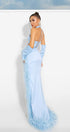 MAXI SKIRT AND CROP TOP SET 3 PARTS WINNIE SATIN FEATHERS LIGHT BLUE