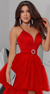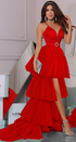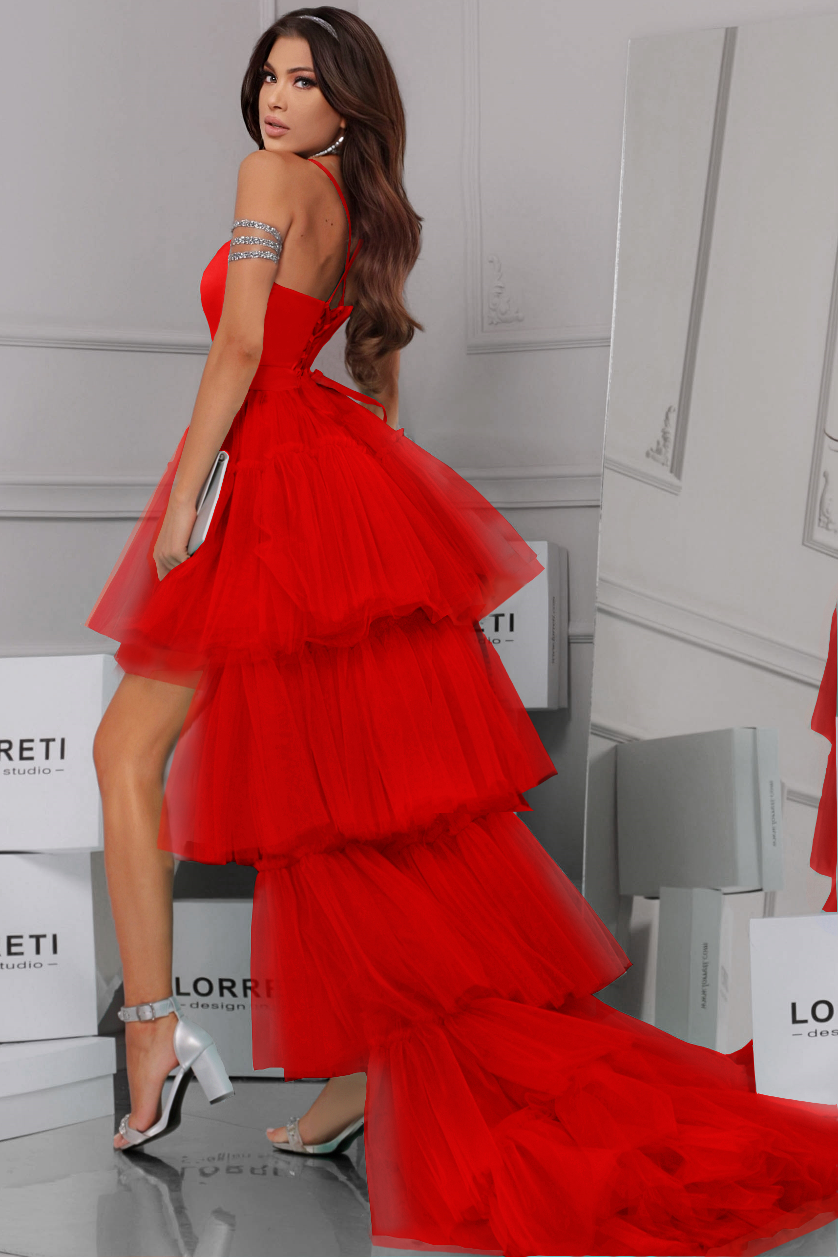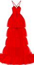 MAXI SKIRT AND CROP TOP SET ANNIKA SATIN TULLE RED